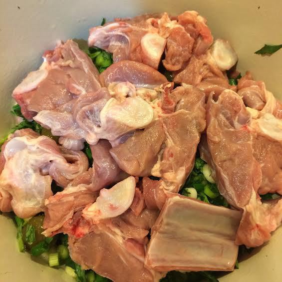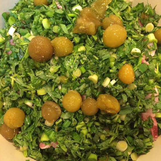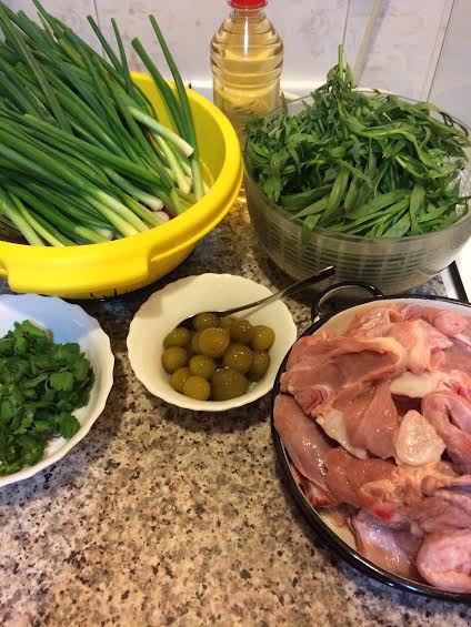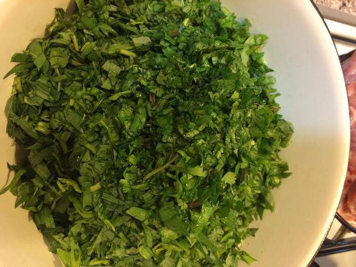 Последний слой: мясо, зелень, ткемали и соль. Залить все 1 стаканом вина, накрыть крышкой и на сильном огне довести до кипения, затем уменьшить огонь и варить до готовности мяса. У меня на это ушло где-то час. Ароматный, весенний обед готов! Приятного аппетита!
