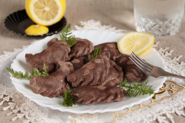Готовые вареники, пельмени можно подавать с постным майонезом, можно с вишневым соусом (например, как по моему рецепту "Фучжу с вишневым соусом"), можно подавать с легкой уксусной водичкой (так я очень любила кушать в детстве), можно с маринованным имбирем, а еще нам очень понравился вариант, сбрызнув лимонным соком. Угощайтесь! Приятного Поста! Приятного аппетита!