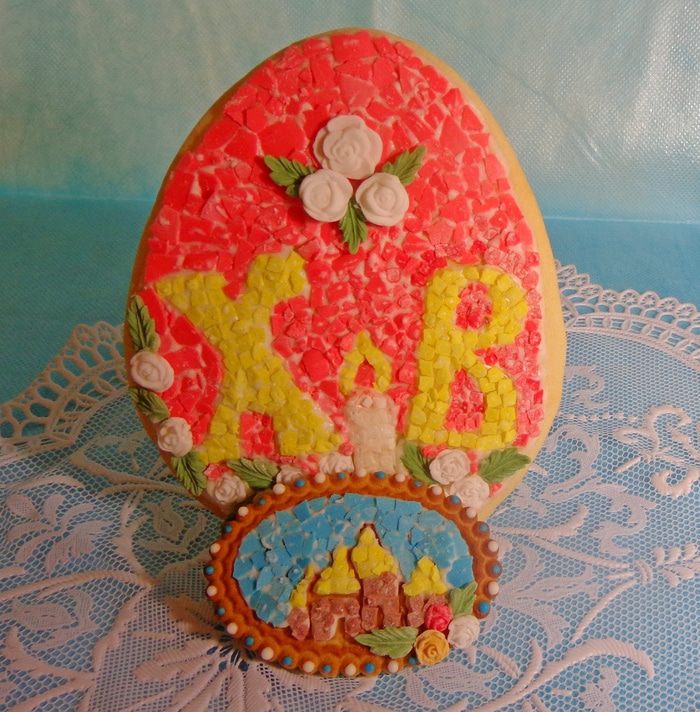 И для еще большего пасхального колорита сделала большое мозаичное яйцо.