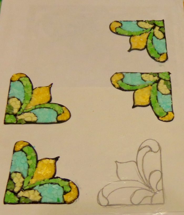 Время приготовления указала очень приблизительно. Не знаю, включать ли сюда время на просушивание, на изготовление материалов для мозаики, на тяжкие сомнения и размышления и т.п. В общем, я работала, не разгибая спины несколько дней.