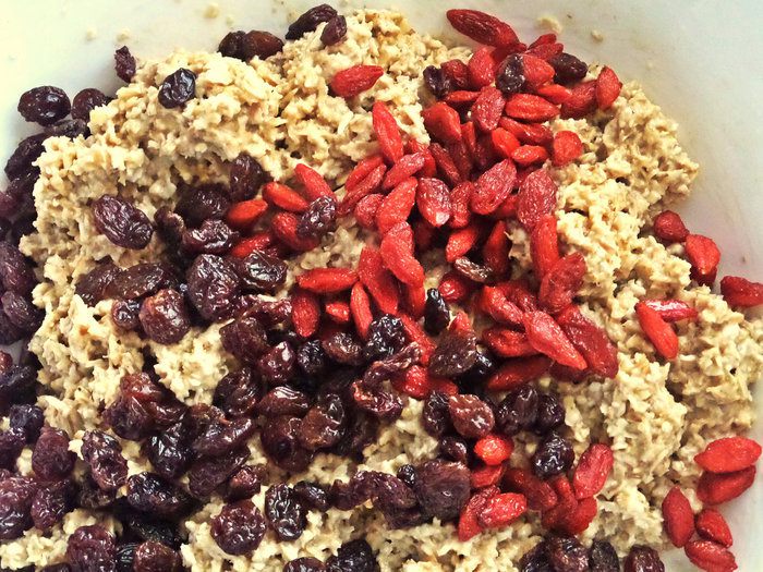 Сегодня у меня такие добавки: промытые, отжатые ягоды годжи и изюм.