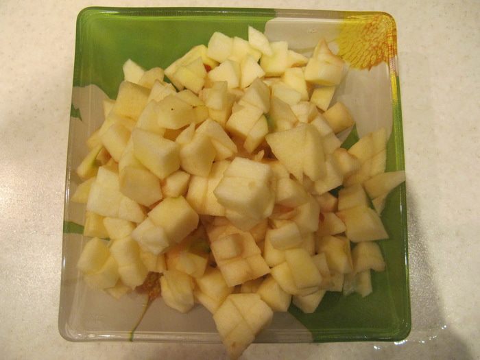 Яблоки очистить от кожуры и сердцевины. Нарезать небольшими кубиками.