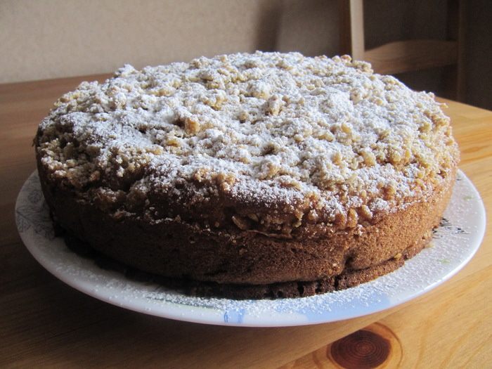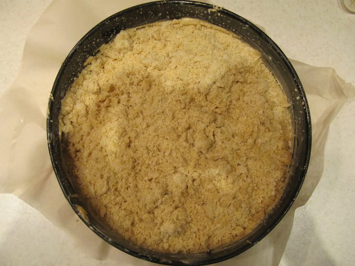 Сверху посыпать посыпкой из холодильника и отправить в предварительно разогретую до 180°C духовку приблизительно на 1 час.