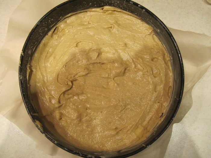 Вмешать яблоки в основное тесто.