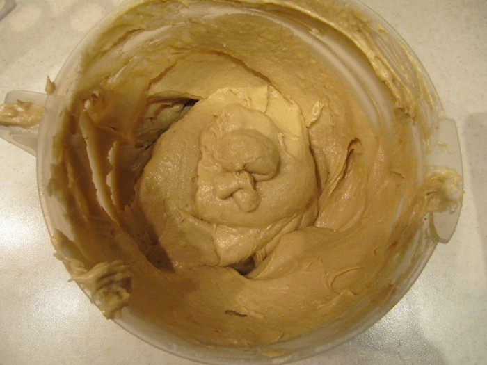 Сливочное масло взбить с сахаром в пышную однородную массу.