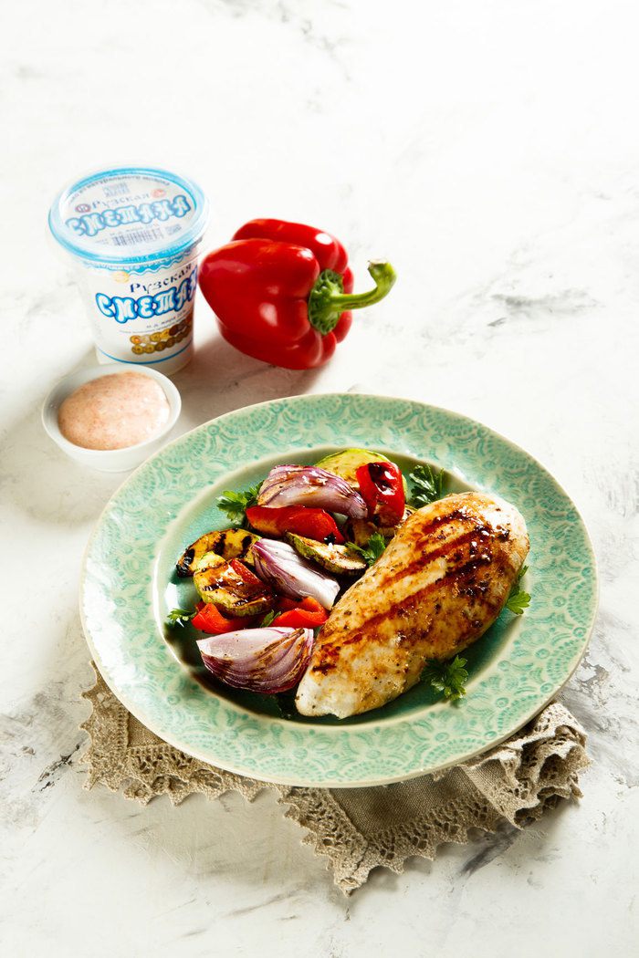 Куриное филе в кефирном маринаде с овощами на гриле