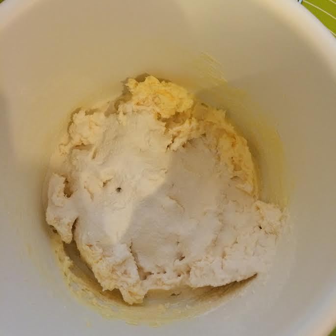 Тесто: взбить масло с сахаром, солью и ванильным сахаром. Добавить желтки и еще раз хорошо взбить.
