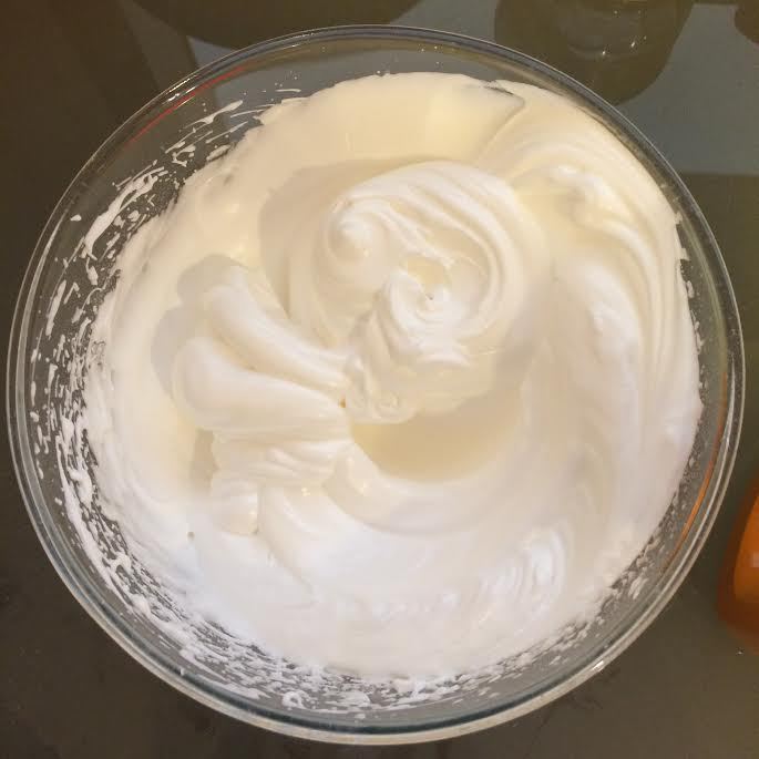 Белки взбить с сахарной пудрой (10 минут), в конце добавить крахмал.