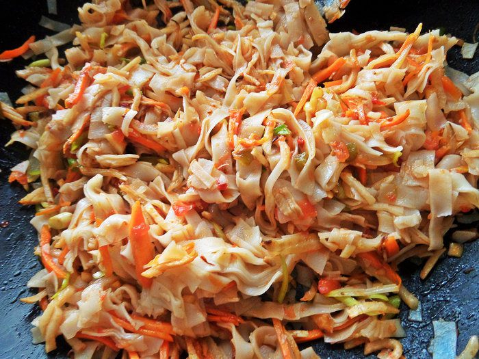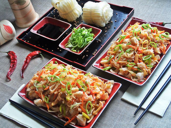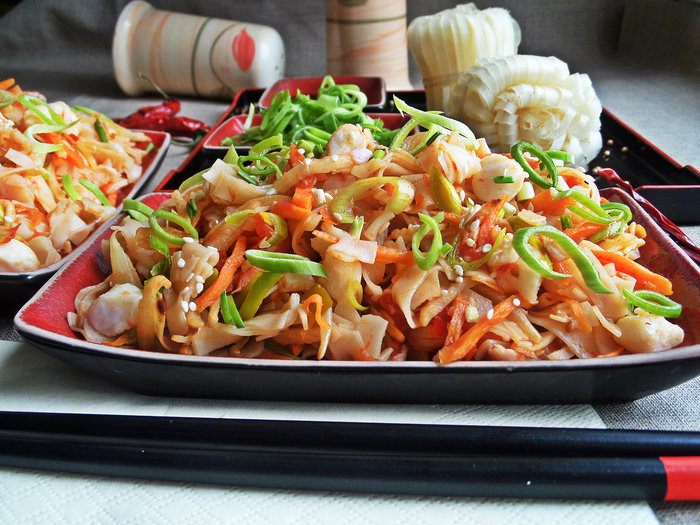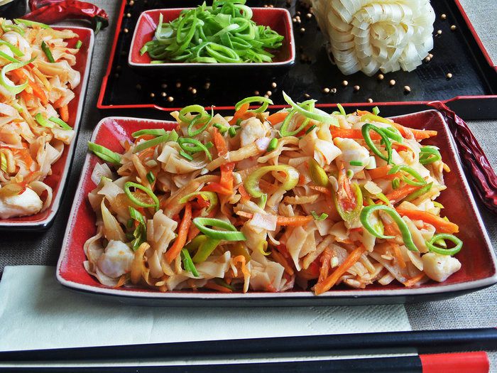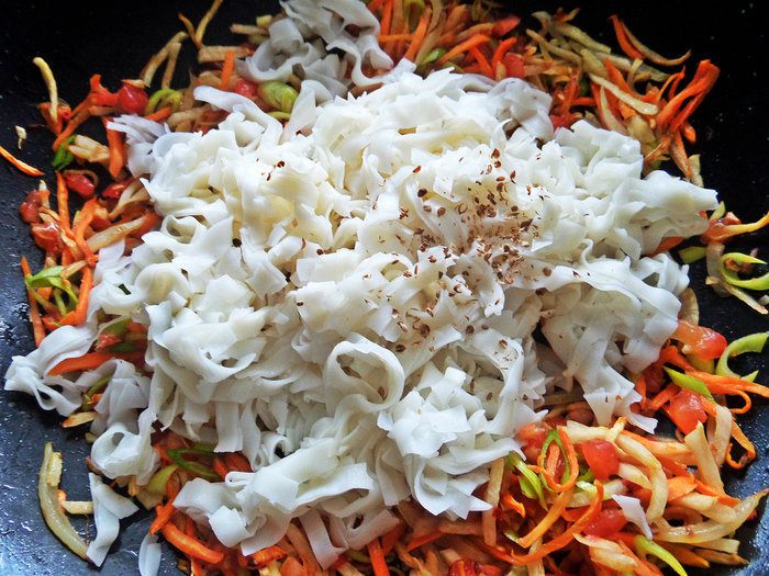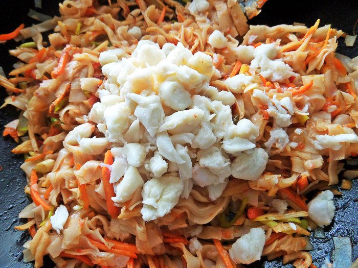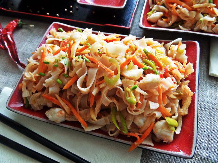 Нежная, но в то же время пикантная лапша с ароматными овощами и крабовым мясом понравится вам на ужин!