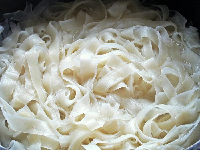 Параллельно будем готовить лапшу согласно инструкции (фото) на упаковке. 100 г — это 2 таких пучка, варить 2 — 3 минуты.
