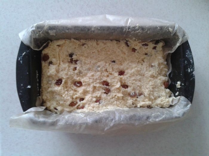 Форму для выпечки застелить пергаментом, смазать небольшим количеством сливочного масла и слегка присыпать мукой. Выложить тесто в подготовленную форму и отправить в предварительно разогретую до 180°C духовку на 40-50 минут.