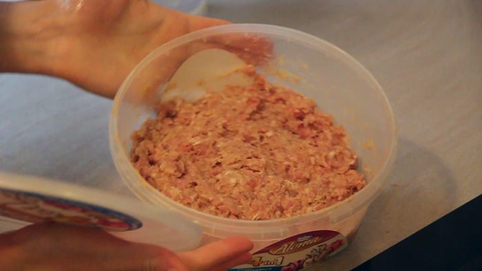 Накрываем емкость с фаршем крышкой и ставим в холодильник на 15-20 минут.