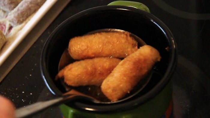 Жарим по несколько штук в кипящем масле около 3-х минут.
