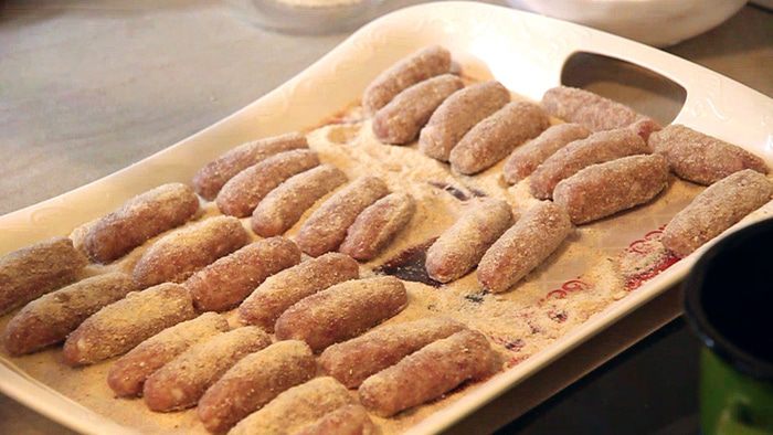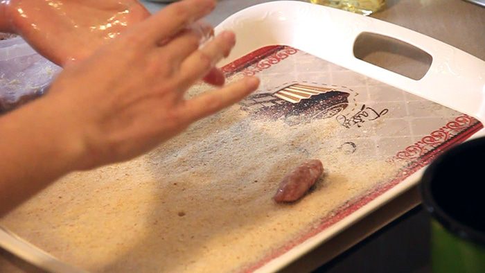 Обваливаем все котлетки в панировочных сухарях.