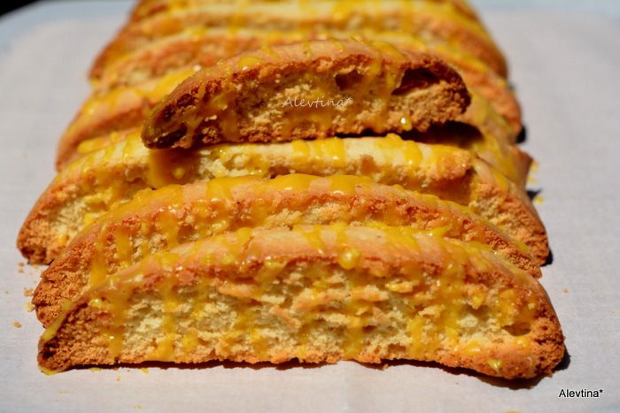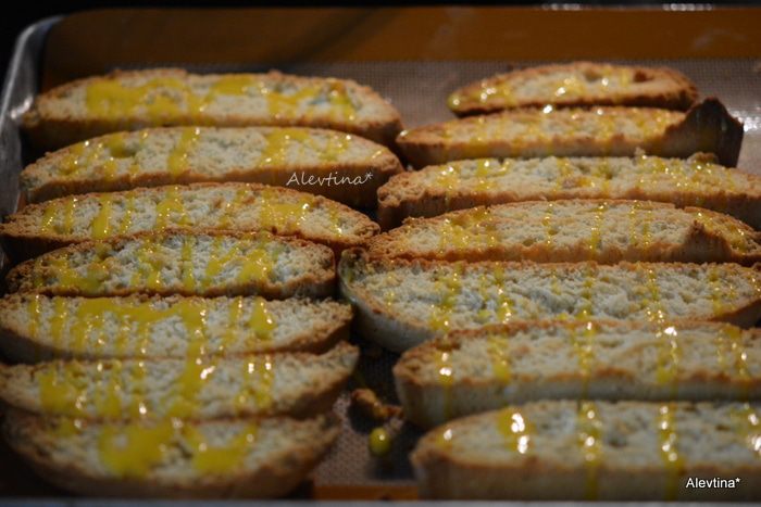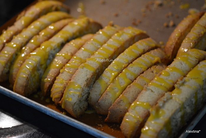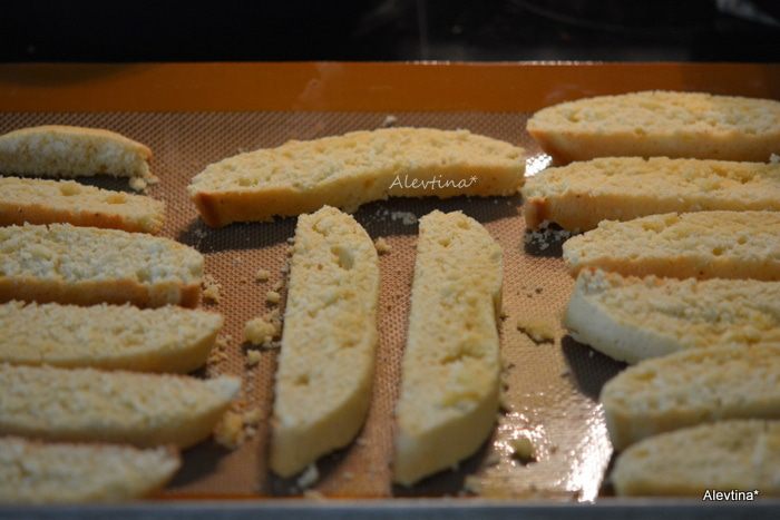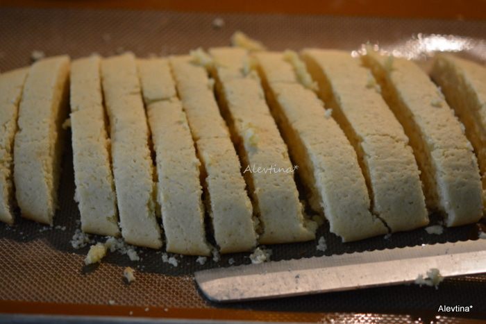 Развернуть бискотти на противне и вернуть в духовку на 30-35 мин.