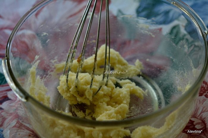 Взбить сливочное масло комнатной температуры с сахаром. Добавить соль, лимонную цедру, миндальный экстракт, разрыхлитель. Все вместе взбить.