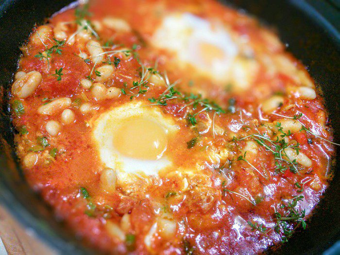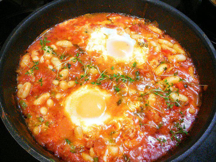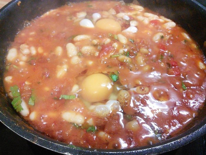 P. S. По техническим причинам произошло несколько замен: зеленый лук заменила репчатым, красную фасоль на белую, свежие спелые помидоры, которые требовались для рецепта на помидоры консервированные в собственном соку, перец чили на острый соус, а петрушку на укроп. Но не смотря на почти полную подмену было очень вкусно