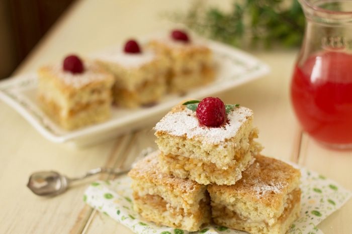 Охладить, нарезать на небольшие квадратики и посыпать сахарной пудрой.