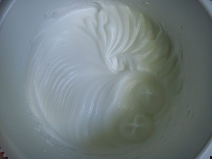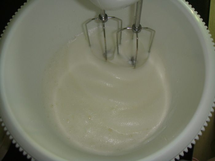 В конце взбивания всыпать оставшийся сахар и еще раз взбить.