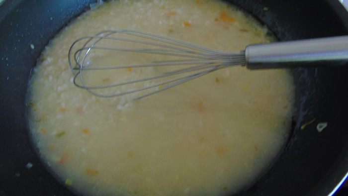 Теперь самое интересное :) засекаем 16 минут и начинаем вливать бульон, по половнику, как выпарится предыдущий вливаем следующий при этом помешивайте.
