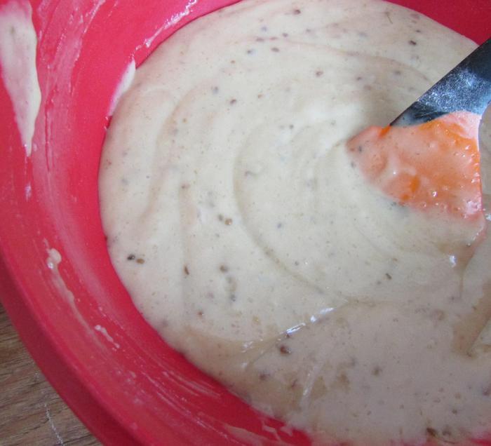 Перелить тесто в силиконовую форму для выпечки. Отправить в разогретую духовку до 160 — 170°С. Выпекать примерно 50 — 60 минут. Или пока деревянная шпажка, вставленная в центр, не останется чистой. Готовый хлеб извлечь из духовки. Остудить, прежде чем освободить от формы.