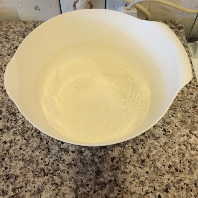 Добавить муку и перемешать на 1 скорости.