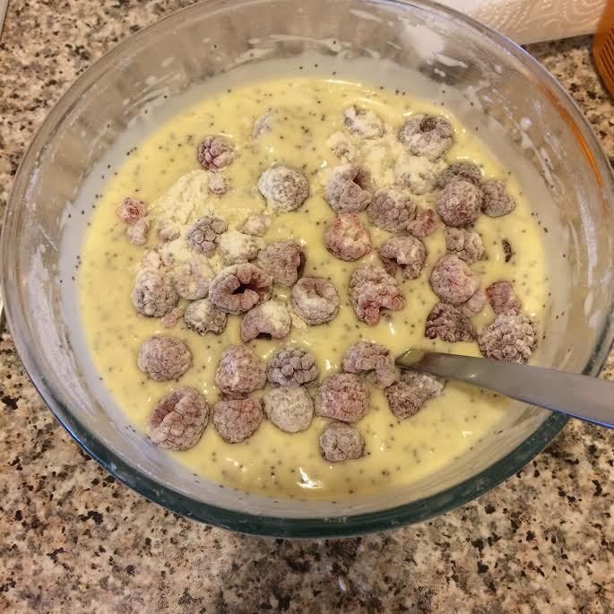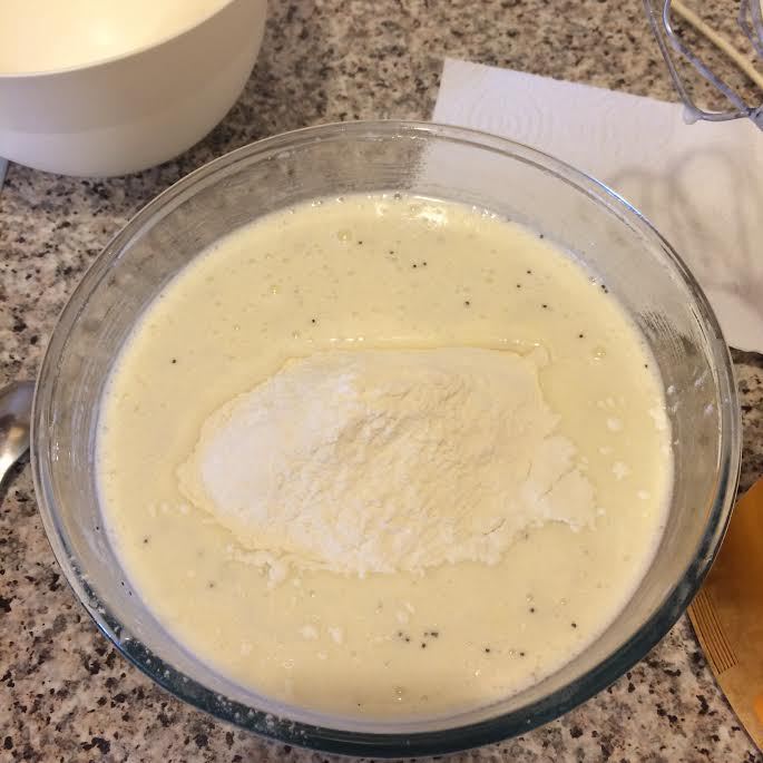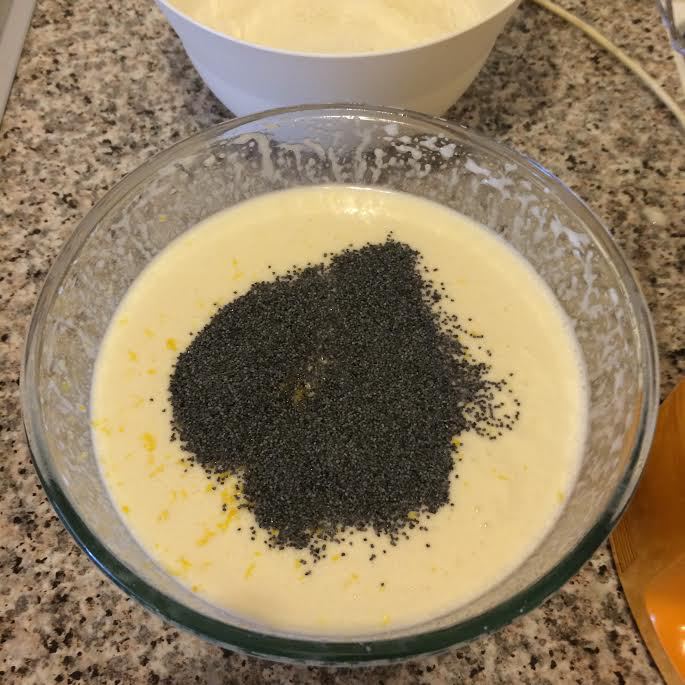 Добавить цедру, мак и перемешать на первой скорости миксера.