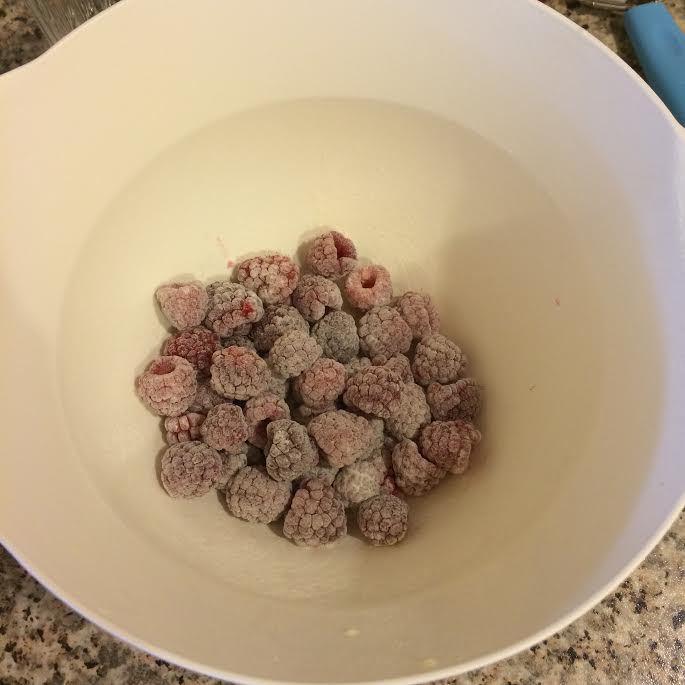 Малину аккуратно перемешать с 1 ст. л. муки.