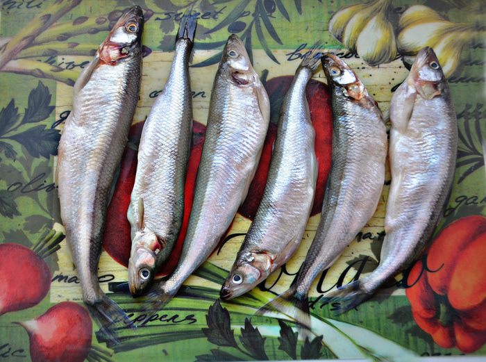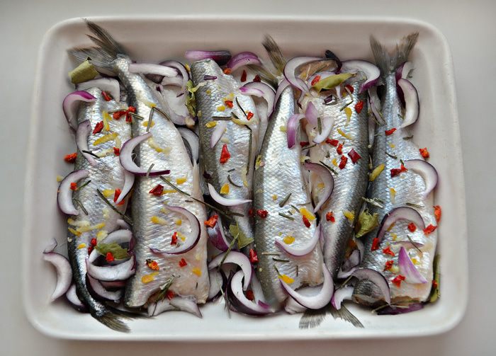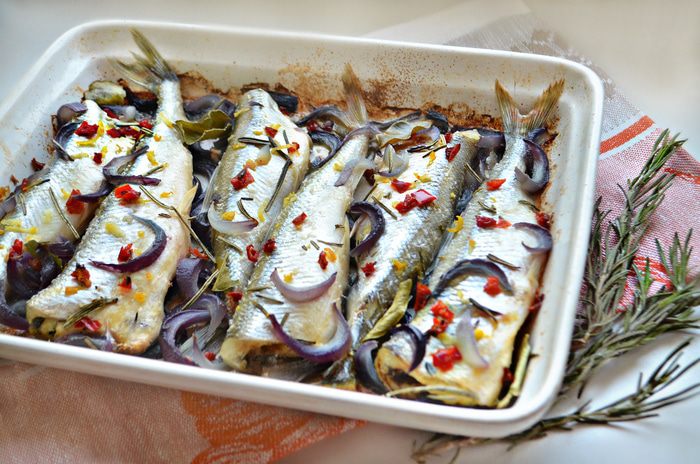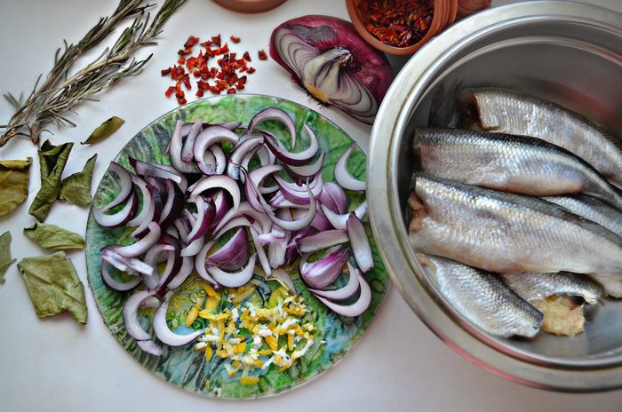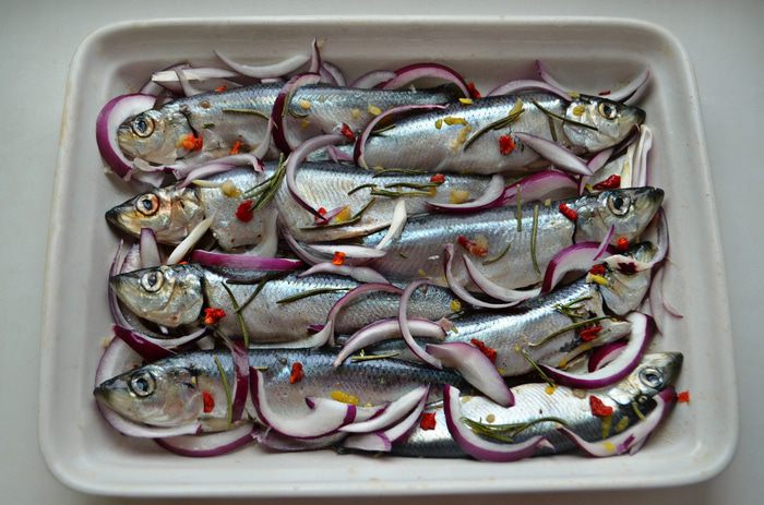 Рыбу слегка натрите солью, сбрызните соком лимона. В смазанную маслом форму положите часть лука, сверху — корюшку. Приправьте рыбу иголочками розмарина, лимонной цедрой, хлопьями сладкой красной паприки и присыпьте оставшимся красным луком. Если у вас есть сухие листья лайма, то пару небольших листиков сюда также прекрасно подойдут.