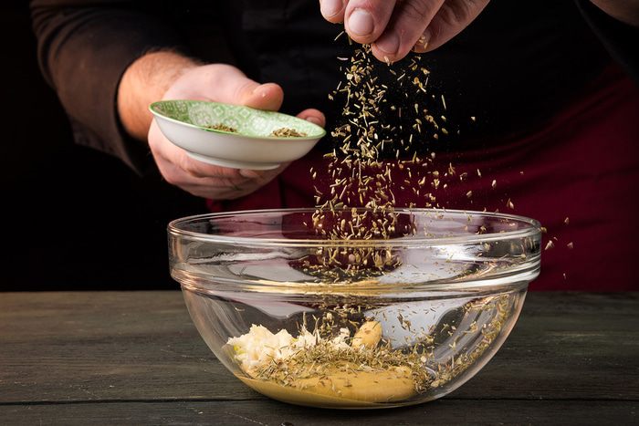 Духовку разогреть до 180°С. Приготовить пряную глазурь. Для этого смешать измельченный чеснок, горчицу, специи.