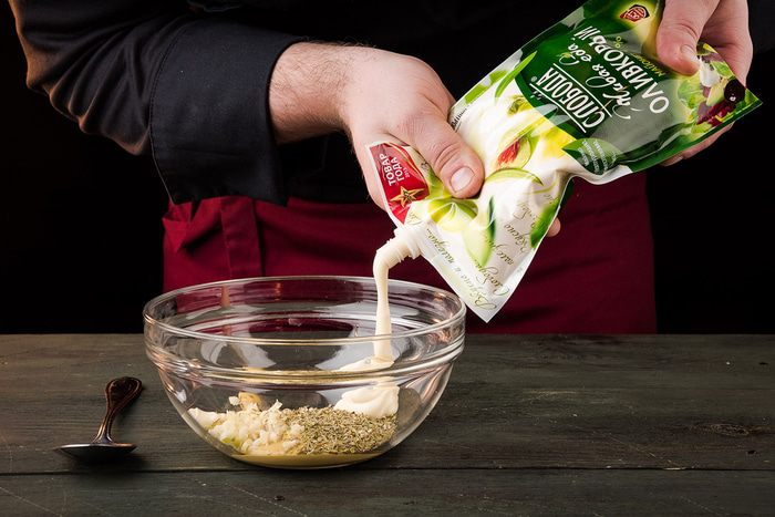 Добавить майонез Оливковый ТМ «Слобода» и все хорошо перемешать.