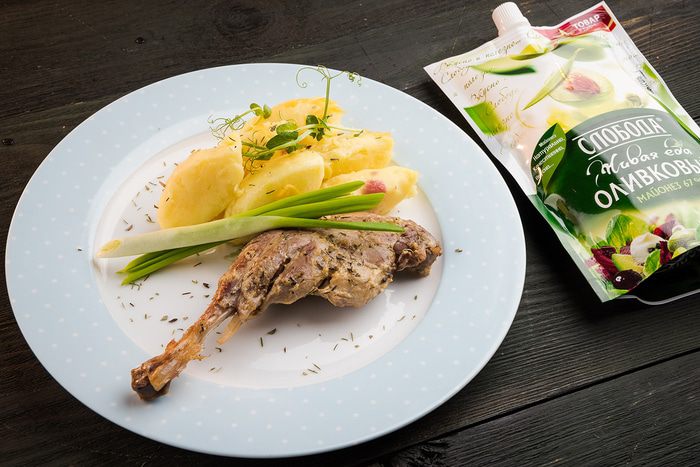 Утиные ножки в пряной глазури готовы! В качестве гарнира подойдет отварной картофель и свежая зелень.
