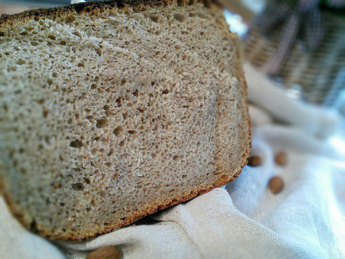 P. S. Позже я узнала, что чуфа это вовсе не орех, а съедобный клубень и тем самым качественно отличается от миндаля. Поэтому если вы будете выпекать этот хлеб, то необходимо уменьшить количество жидкости в основном замесе до 320 г.