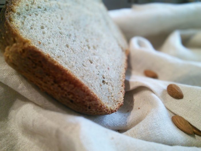 Хлеб, на мой взгляд, очень интересный. Он выпекается из 4 видов муки, один из сортов — это миндальная мука. Расскажу по секрету: в оригинальном рецепте автор использует муку земляного миндаля, так называемого чуфа. Но я с ним к сожалению не знакома и поэтому не мудрствуя лукаво решила использовать молотый, бланшированный миндаль. Ее замечательные свойства в выпечке мне известны и поэтому без промедления решила заменить им мне доселе неизвестную муку земляного миндаля. И вот что у меня получилось