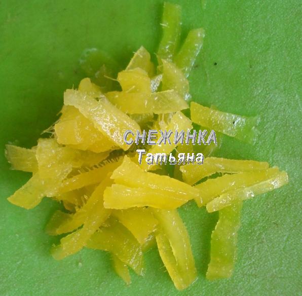 Имбирные цукаты нарезаем соломкой.