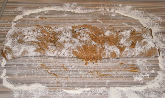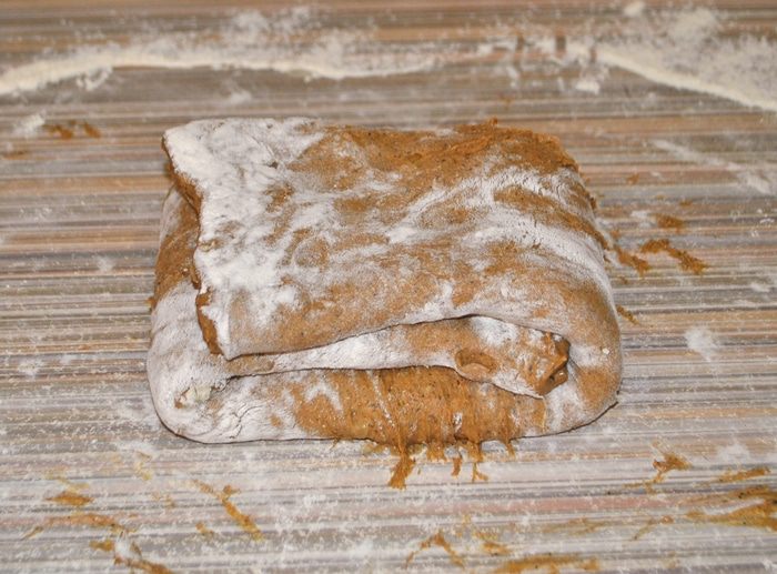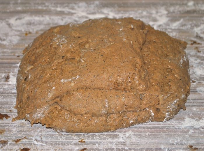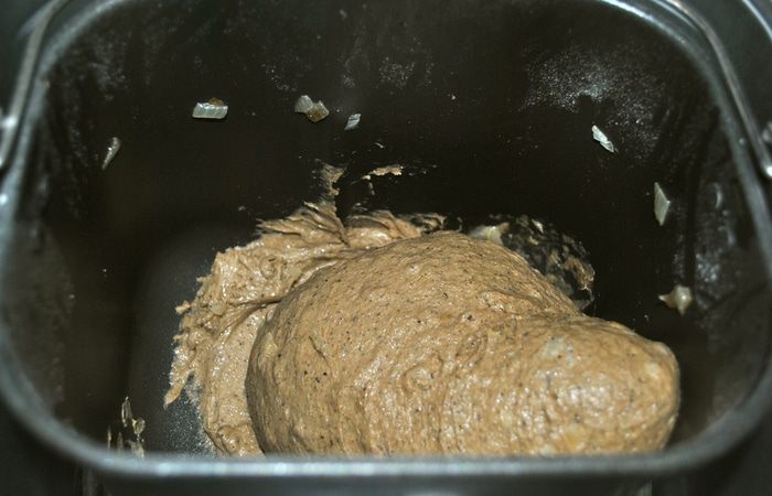 Стартер закваски у меня пшеничный, поэтому обновляла ее смесью муки ржаной + пшеничная. Смешиваем закваску на пике активности с водой или квасом (с запаренным солодом), загружаем ее в ХП. Добавляем мед (у меня гречишный, он лучше всего подходит к ржаной муке), соль. Взвешиваем муку, но всю сразу не сыпем, т.к. ее может уйти меньше или больше. Включаем ХП на программу тесто. Жареный лук добавляю после сигнала ХП. Как только ХП перестала месить засекаем 30 минут, тесто будет отдыхать.