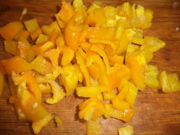 Мякоть помидоров мелко порубить.