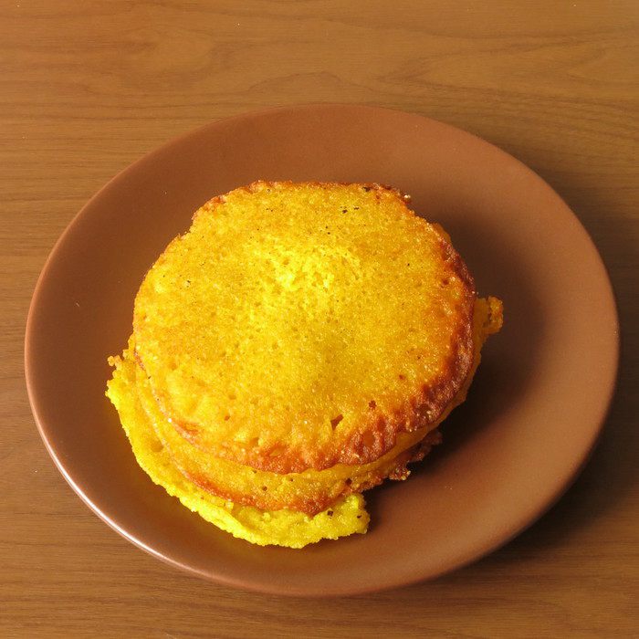 Выпекаем на смазанной маслом (использовала масло из сафлора) сковороде — наливаем тесто и распределяем половником. Существует множество разновидностей досас — тонкие большие лепешки, свернутые пирамидкой, рулетом, с начинкой, которая запекается вместе с блином, досас с соусами и различными добавками. У меня небольшие досас — досас сет. Тонкие досас можно и не переворачивать. Более плотные переворачиваем, когда край пропечется.