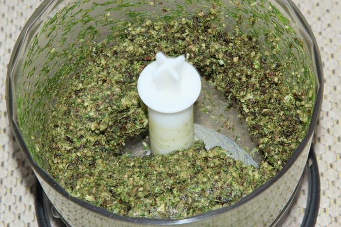Взбиваем все в блендере до вязкой массы. Если хотите, можно немножко добавить воды. Поправляем по вкусу на соль и перец.