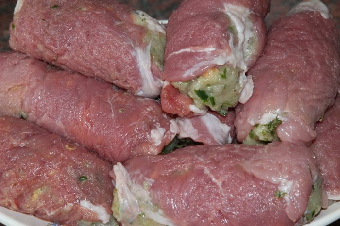 Как накормить одним свиным филе и половинкой куриного филе компанию из 5 мужчин? Причем — хорошо накормить. На помощь придут крученики. Если есть свиное филе, то в него можно закрутить все, что душе угодно. Я немного поразмыслила и у меня получилось ну очень неплохо. Мужчины остались довольны, ну и я — тоже.