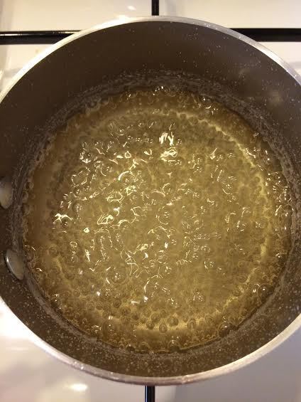 Духовку нагреть до 160°С. Нам понадобится неразъемная форма 20 см, форму хорошо смазать маслом. В кастрюле с толстым дном смешать сахар и воду, помешивая довести до кипения. Оставить кипеть, не размешивая 8-10 минут, пока сироп не станет менять цвет на золотисто-коричневый. После этого снять с огня и добавить сливочное масло, перемешать.