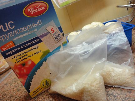 Рис (1 пакетик) отварите до полуготовности.