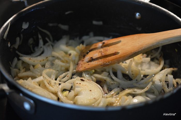 Растопить 2 ст. л. масла. Добавить нарезанный лук — 2 большие головки. Готовить, помешивая, 6 минут.