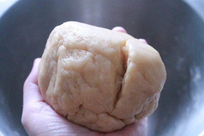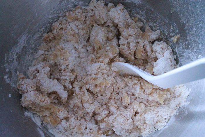 добавляем кипяток и масло. Замешиваем тесто.