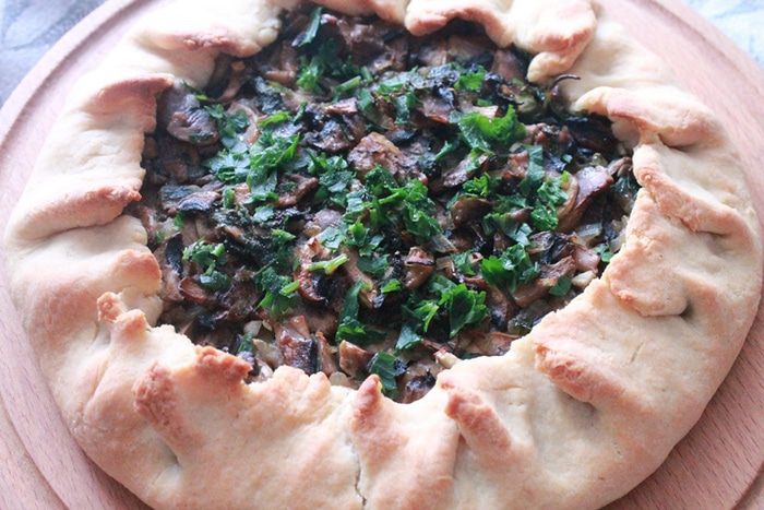 Такую галету можно подать с зеленым салатом на ужин. Можно взять любые грибы.