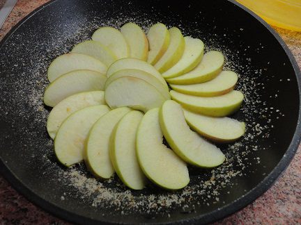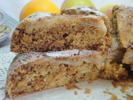В 2 столовых ложках воды разводим 1 чайную ложку соды, добавляем в тесто (сразу же начинается реакция, тесто пенится), перемешиваем и выливаем на яблоки. Сразу же отправляем в уже разогретую духовку и выпекаем. В моей духовке было достаточно 30 минут (а вот автор пишет о 60, так что смотрите по своей духовку, вы ее, родную, знаете лучше всех). Готовую. шарлотку оставляем в духовке еще на 1 час. Вот такая она в разрезе. Ну очень вкусная!