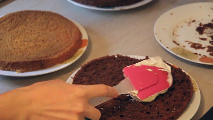 Смазываем формы растительным маслом и приступаем к приготовлению самого торта.