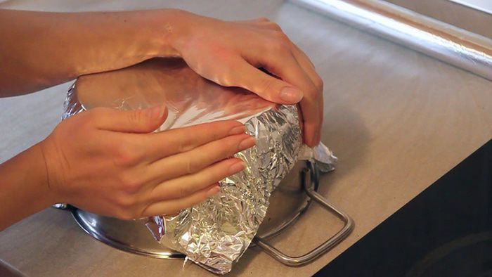 Для приготовления формы нам понадобится кастрюля либо другая емкость, которую мы можем использовать как основу под форму. И, конечно же – фольга.