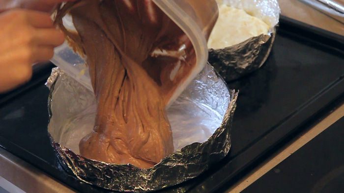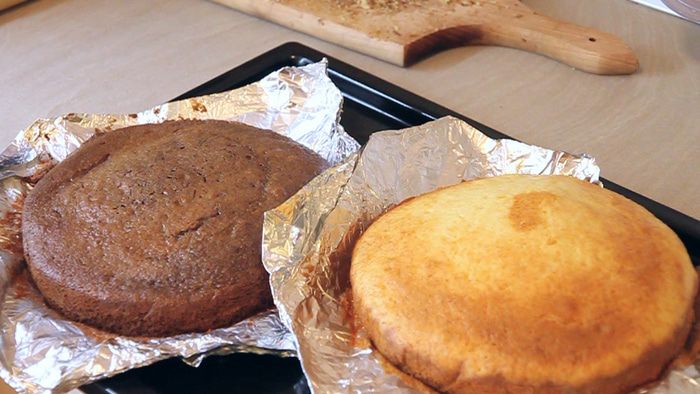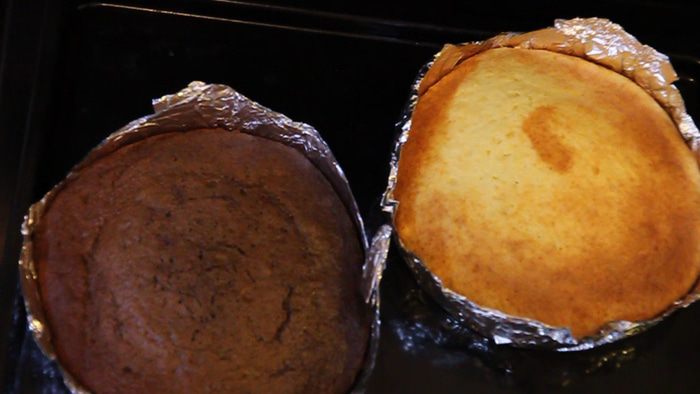 В самом начале мы должны подготовить две одинаковые по размеру формы. Подберите диаметр формы такой, чтобы две формы стали рядом одна с другой на один противень в духовку. Так как выпекать коржи мы будем одновременно.