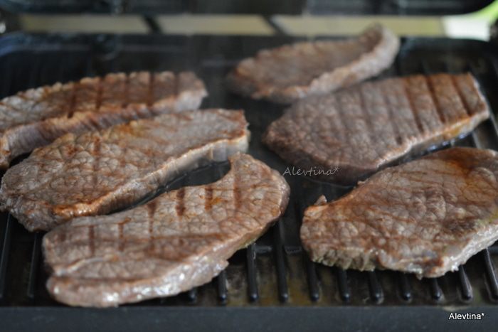 Посолить и поперчить стейки. Готовим на гриле до желаемой готовности с обеих сторон.